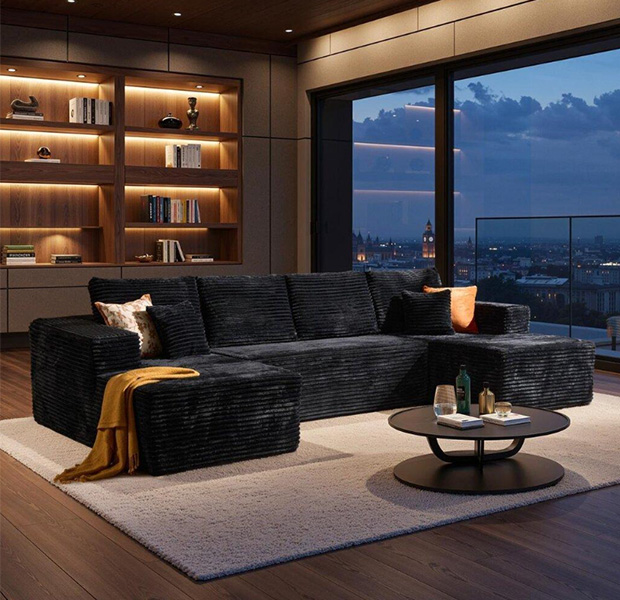 Each seat is filled with high-resilience foam and pocket springs — the kind you’d expect in luxury models twice the price. The soft corduroy texture adds warmth and elegance, creating a space that looks designer yet feels like home.