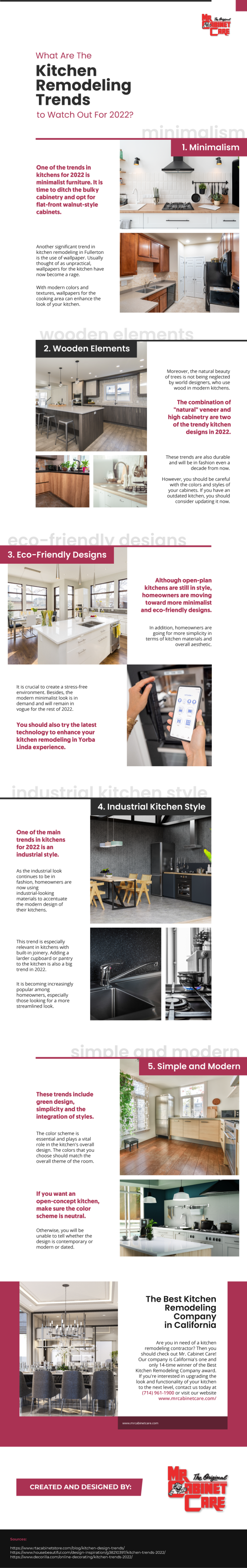 Without further ado, continue reading infographic, designed and created by Mr. Cabinet Care, a well-known cabinet refacing Mission Viejo company as they identify the newest trends next year: